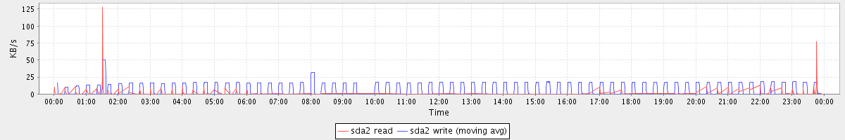 avg(sda2 read) = 0.28 avg(sda2 write) = 4.96