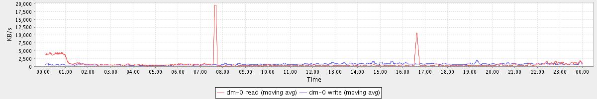 avg(dm-1 read) = 2839.06 avg(dm-1 write) = 263.79
