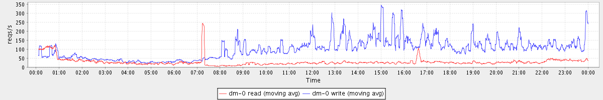 avg(dm-1 read) = 2751.08 avg(dm-1 write) = 206.43