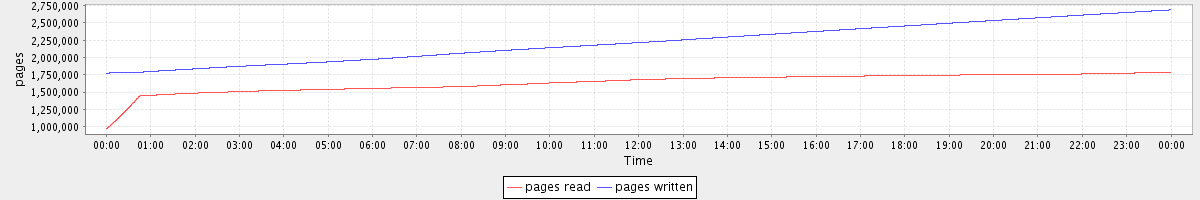 avg(pages read) = 1637366.73 avg(pages written) = 2218637.52