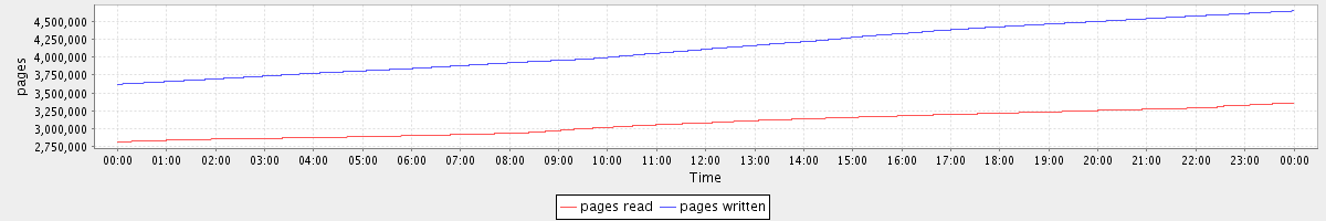 avg(pages read) = 3071087.19 avg(pages written) = 4126763.49