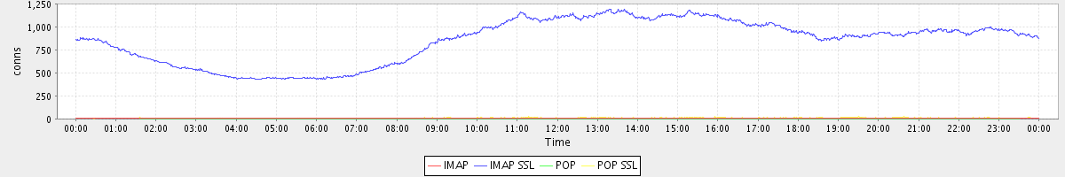 Host zm01.stanford.edu: Mailboxd: Active Connections by Client Protocol