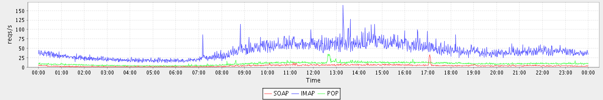 Host zm01.stanford.edu: Mailboxd: Request Rate by Client Protocol