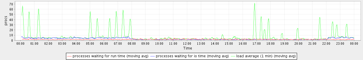 avg(processes waiting for run time) = 1.01 avg(processes waiting for io time) = 2.32 avg(load average (1 min)) = 7.64
