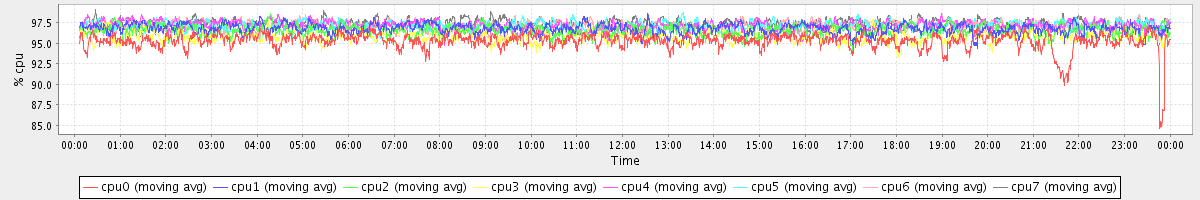 avg(cpu0) = 95.29 avg(cpu1) = 96.81 avg(cpu2) = 96.59 avg(cpu3) = 95.89 avg(cpu4) = 97.11 avg(cpu5) = 97.14 avg(cpu6) = 97.04 avg(cpu7) = 97.34