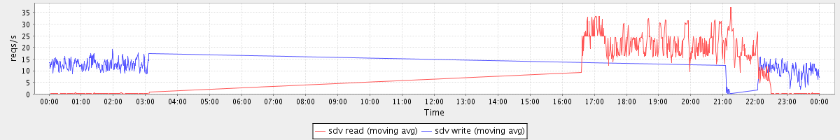 avg(sda read) = 21.04 avg(sda write) = 47.55