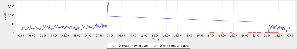 avg(dm-2 read) = 3070.36 avg(dm-2 write) = 2622.30