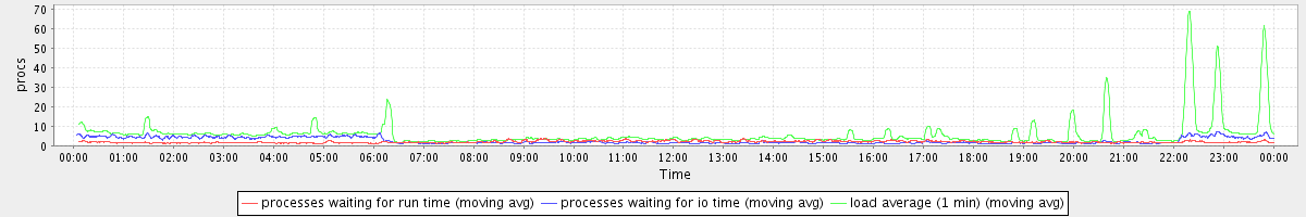 avg(processes waiting for run time) = 2.00 avg(processes waiting for io time) = 2.05 avg(load average (1 min)) = 5.96