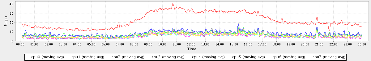 avg(cpu0) = 1.49 avg(cpu1) = 0.31 avg(cpu2) = 0.28 avg(cpu3) = 0.12 avg(cpu4) = 0.12 avg(cpu5) = 0.11 avg(cpu6) = 0.23 avg(cpu7) = 0.11