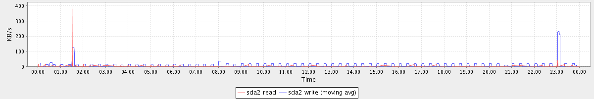 avg(sda2 read) = 0.38 avg(sda2 write) = 6.55