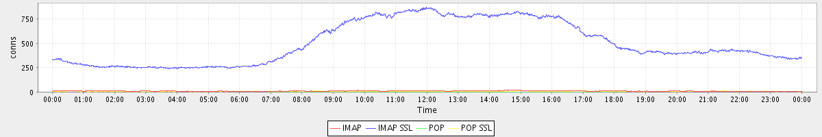 avg(IMAP) = 9.70 avg(IMAP SSL) = 501.96 avg(POP) = 0.02 avg(POP SSL) = 6.21
