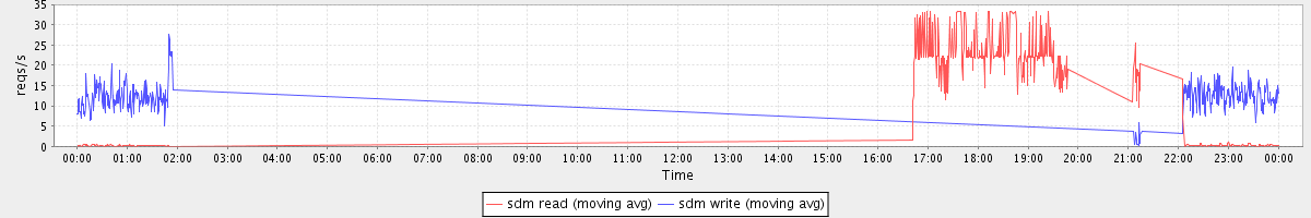 avg(sda read) = 1.16 avg(sda write) = 2.98