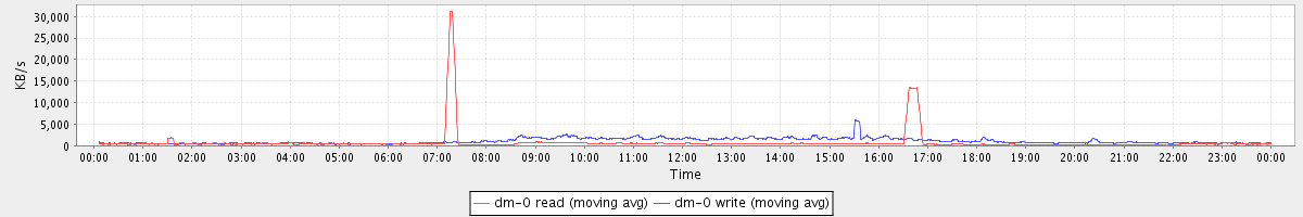 avg(dm-0 read) = 36.31 avg(dm-0 write) = 172.38