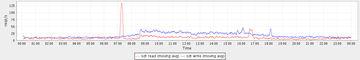 avg(sda1 read) = 25.46 avg(sda1 write) = 41.12