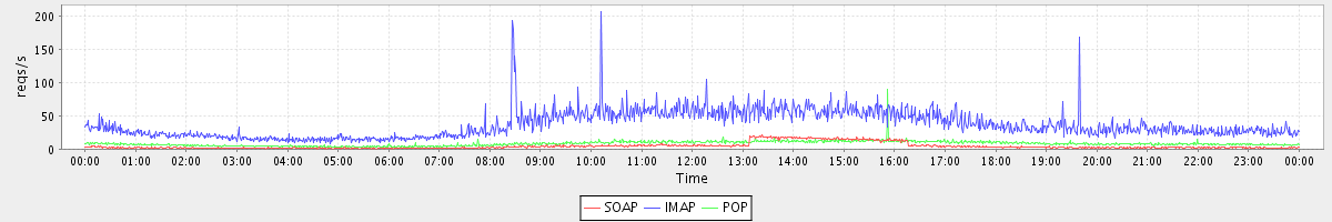 Host zm01.stanford.edu: Mailboxd: Request Rate by Client Protocol