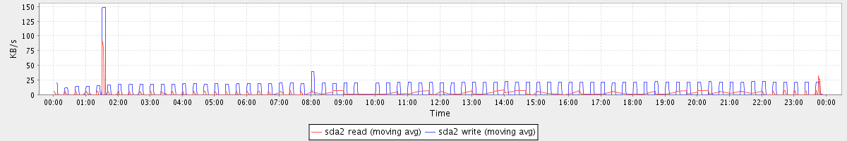 avg(sda2 read) = 0.49 avg(sda2 write) = 6.27