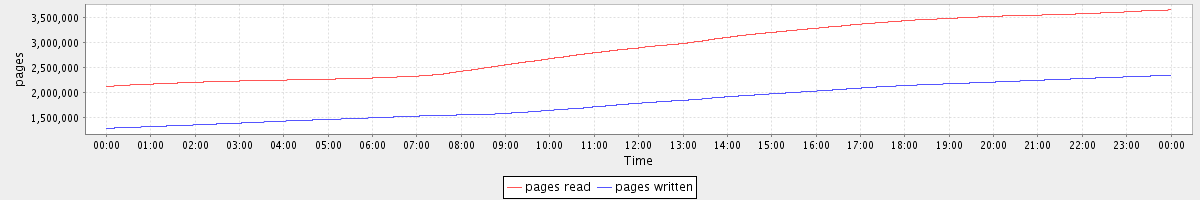 avg(pages read) = 2882278.95 avg(pages written) = 1810148.39