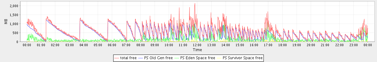 avg(total free) = 589.60 avg(PS Old Gen free) = 444.36 avg(PS Eden Space free) = 136.97 avg(PS Survivor Space free) = 8.27