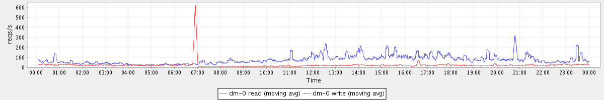 avg(dm-0 read) = 21.05 avg(dm-0 write) = 74.15