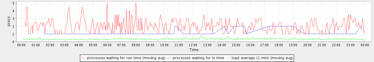 avg(processes waiting for run time) = 0.30 avg(processes waiting for io time) = 0.01 avg(load average (1 min)) = 0.34