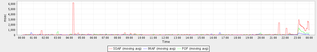 Host zm01.stanford.edu: Mailboxd: Response Time by Client Protocol