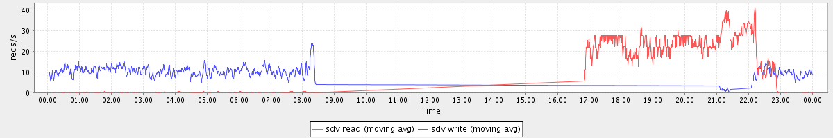 avg(sdb read) = 8.79 avg(sdb write) = 16.63