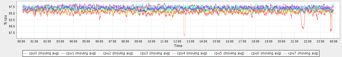 avg(cpu0) = 95.29 avg(cpu1) = 96.76 avg(cpu2) = 96.49 avg(cpu3) = 95.81 avg(cpu4) = 97.02 avg(cpu5) = 97.18 avg(cpu6) = 97.01 avg(cpu7) = 97.36