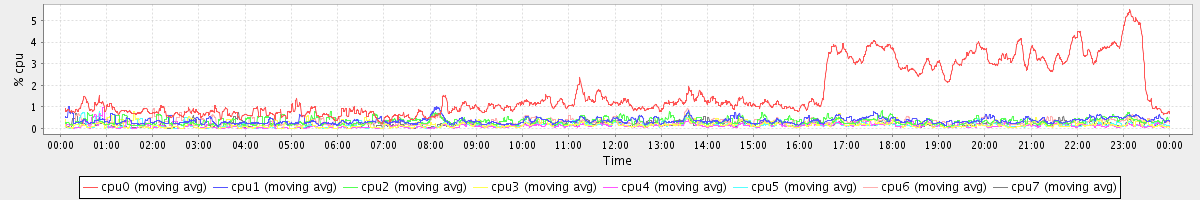 avg(cpu0) = 1.66 avg(cpu1) = 0.36 avg(cpu2) = 0.34 avg(cpu3) = 0.18 avg(cpu4) = 0.12 avg(cpu5) = 0.14 avg(cpu6) = 0.29 avg(cpu7) = 0.16
