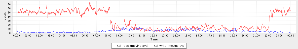 avg(sda1 read) = 33.68 avg(sda1 write) = 41.83