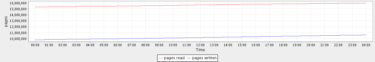 avg(pages read) = 15643953.27 avg(pages written) = 10183756.88