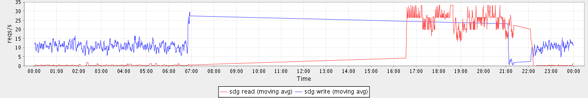avg(sda read) = 20.64 avg(sda write) = 44.67