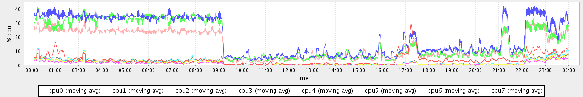 avg(cpu0) = 1.41 avg(cpu1) = 0.25 avg(cpu2) = 0.21 avg(cpu3) = 0.09 avg(cpu4) = 0.08 avg(cpu5) = 0.09 avg(cpu6) = 0.17 avg(cpu7) = 0.10