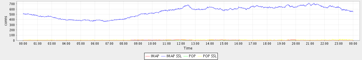 avg(IMAP) = 2.49 avg(IMAP SSL) = 546.44 avg(POP) = 0.06 avg(POP SSL) = 6.17