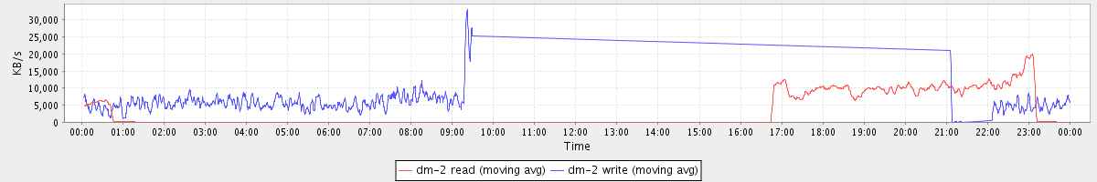 avg(dm-2 read) = 28.38 avg(dm-2 write) = 702.79