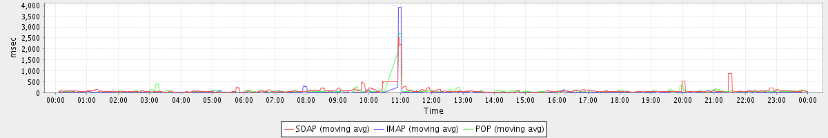 Host zm01.stanford.edu: Mailboxd: Response Time by Client Protocol