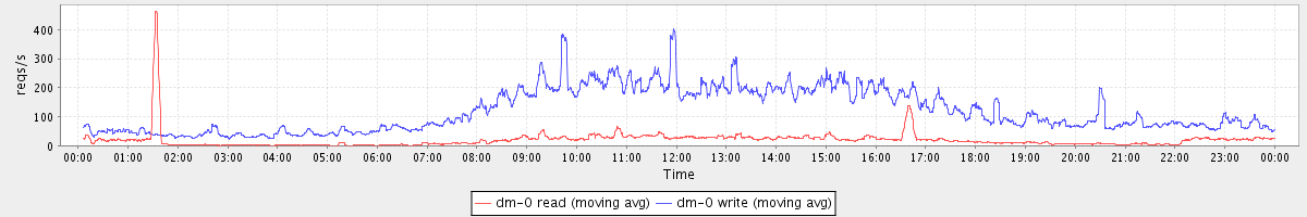 avg(dm-1 read) = 1166.32 avg(dm-1 write) = 237.40