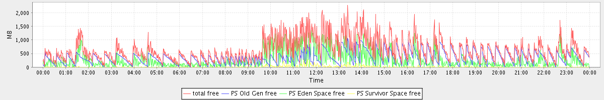 avg(total free) = 635.95 avg(PS Old Gen free) = 355.44 avg(PS Eden Space free) = 264.96 avg(PS Survivor Space free) = 15.54