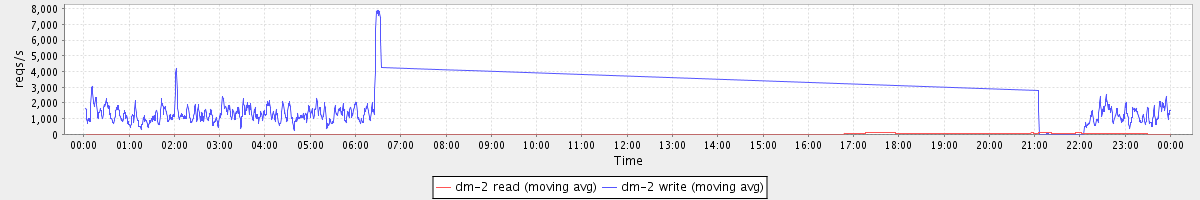 avg(dm-1 read) = 2029.81 avg(dm-1 write) = 320.26