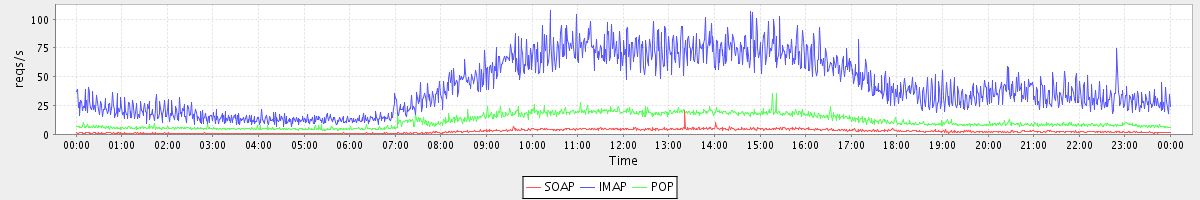 Host zm09.stanford.edu: Mailboxd: Request Rate by Client Protocol