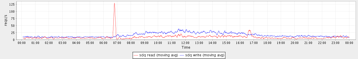 avg(sda1 read) = 24.27 avg(sda1 write) = 44.25