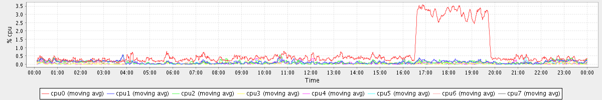 avg(cpu0) = 0.05 avg(cpu1) = 0.03 avg(cpu2) = 0.03 avg(cpu3) = 0.00 avg(cpu4) = 0.00 avg(cpu5) = 0.00 avg(cpu6) = 0.02 avg(cpu7) = 0.00
