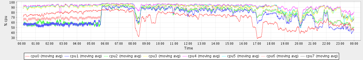 avg(cpu0) = 68.17 avg(cpu1) = 71.56 avg(cpu2) = 75.29 avg(cpu3) = 88.80 avg(cpu4) = 92.49 avg(cpu5) = 89.96 avg(cpu6) = 78.07 avg(cpu7) = 90.13