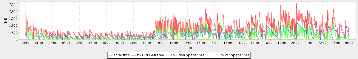 avg(total free) = 741.47 avg(PS Old Gen free) = 368.62 avg(PS Eden Space free) = 356.42 avg(PS Survivor Space free) = 16.44