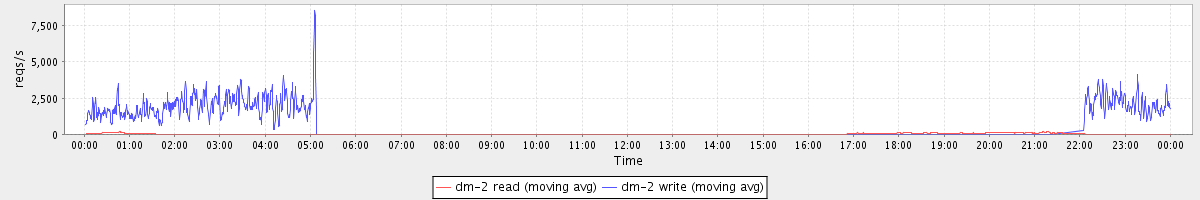 avg(dm-2 read) = 2420.47 avg(dm-2 write) = 2366.56