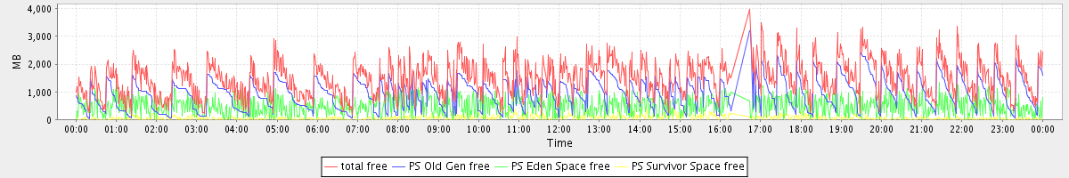 avg(total free) = 1505.25 avg(PS Old Gen free) = 934.24 avg(PS Eden Space free) = 502.73 avg(PS Survivor Space free) = 68.27