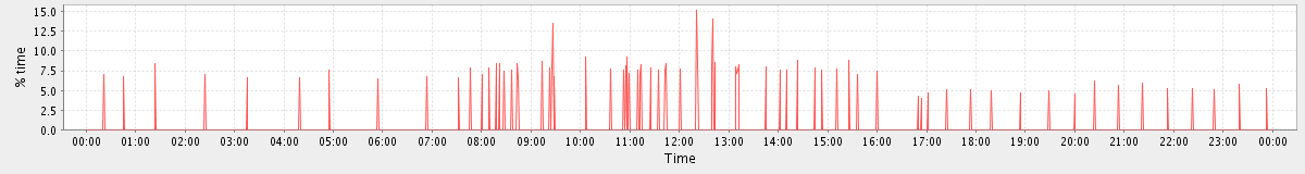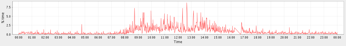 avg(processes waiting for run time) = 1.10 avg(processes waiting for io time) = 3.39 avg(load average (1 min)) = 13.30