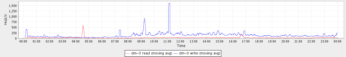 avg(dm-1 read) = 1905.80 avg(dm-1 write) = 273.18