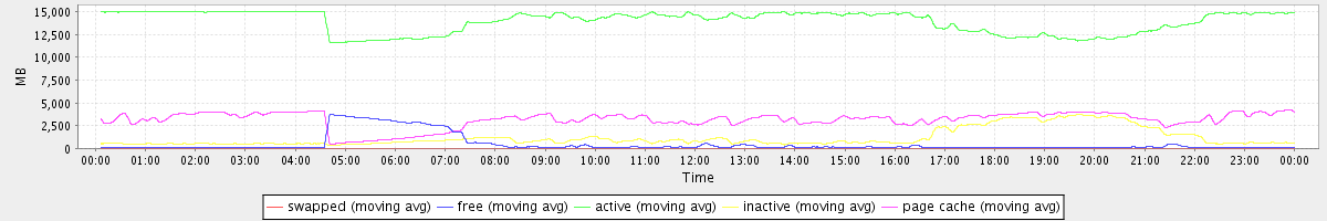 avg(swapped) = 7.93 avg(free) = 454.82 avg(active) = 13960.00 avg(inactive) = 1173.80 avg(page cache) = 3153.35