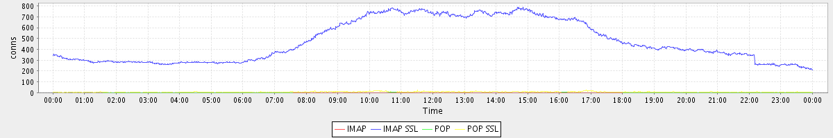 Host zm04.stanford.edu: Mailboxd: Active Connections by Client Protocol