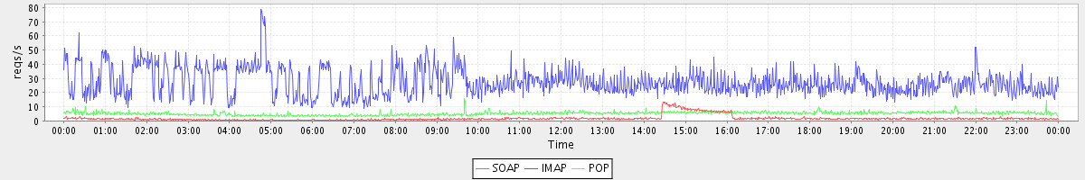 Host zm02.stanford.edu: Mailboxd: Request Rate by Client Protocol